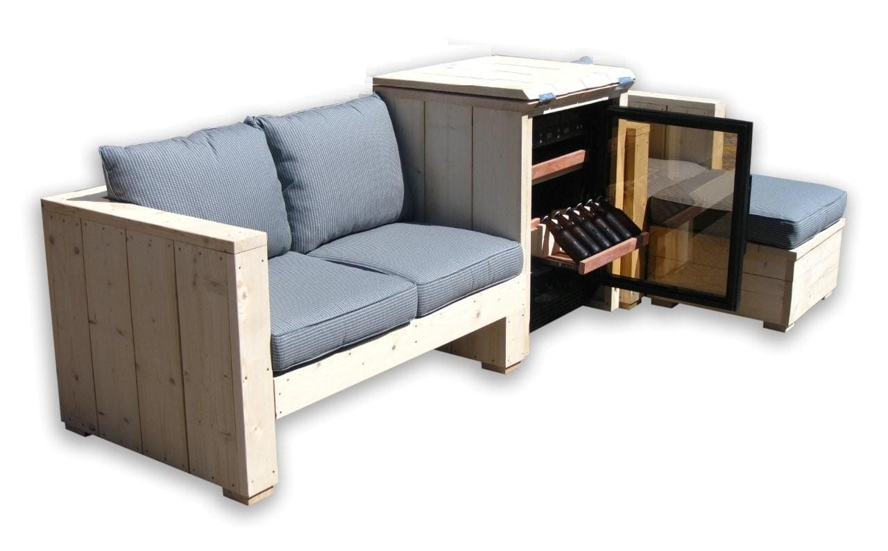 Bierloungeset, is een bierbewaarkast met een gehele loungeset. Bierbewaarkast geïntrigeerd in de set.