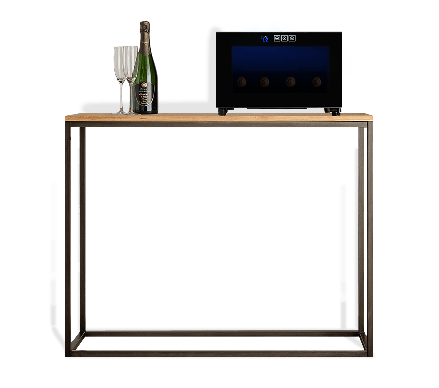 Der Schrank arbeitet mit 220 Volt – und die Tür (Doppelverglasung) ist mit einer „Spiegelbeschichtung“ versehen, die dem Schrank ein luxuriöses Aussehen verleiht und das Tageslicht den Champagnerflaschen nichts anhaben kann.