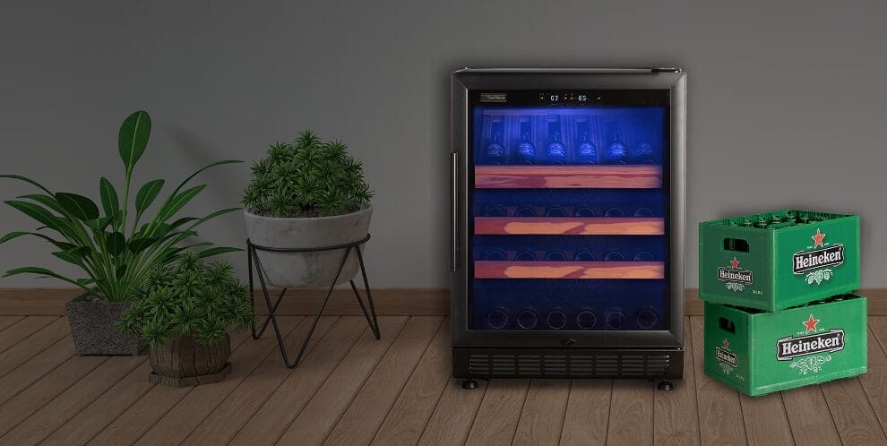 This beer cooler has the most optimal configuration and of course you can also place large bottles on the shelves.
