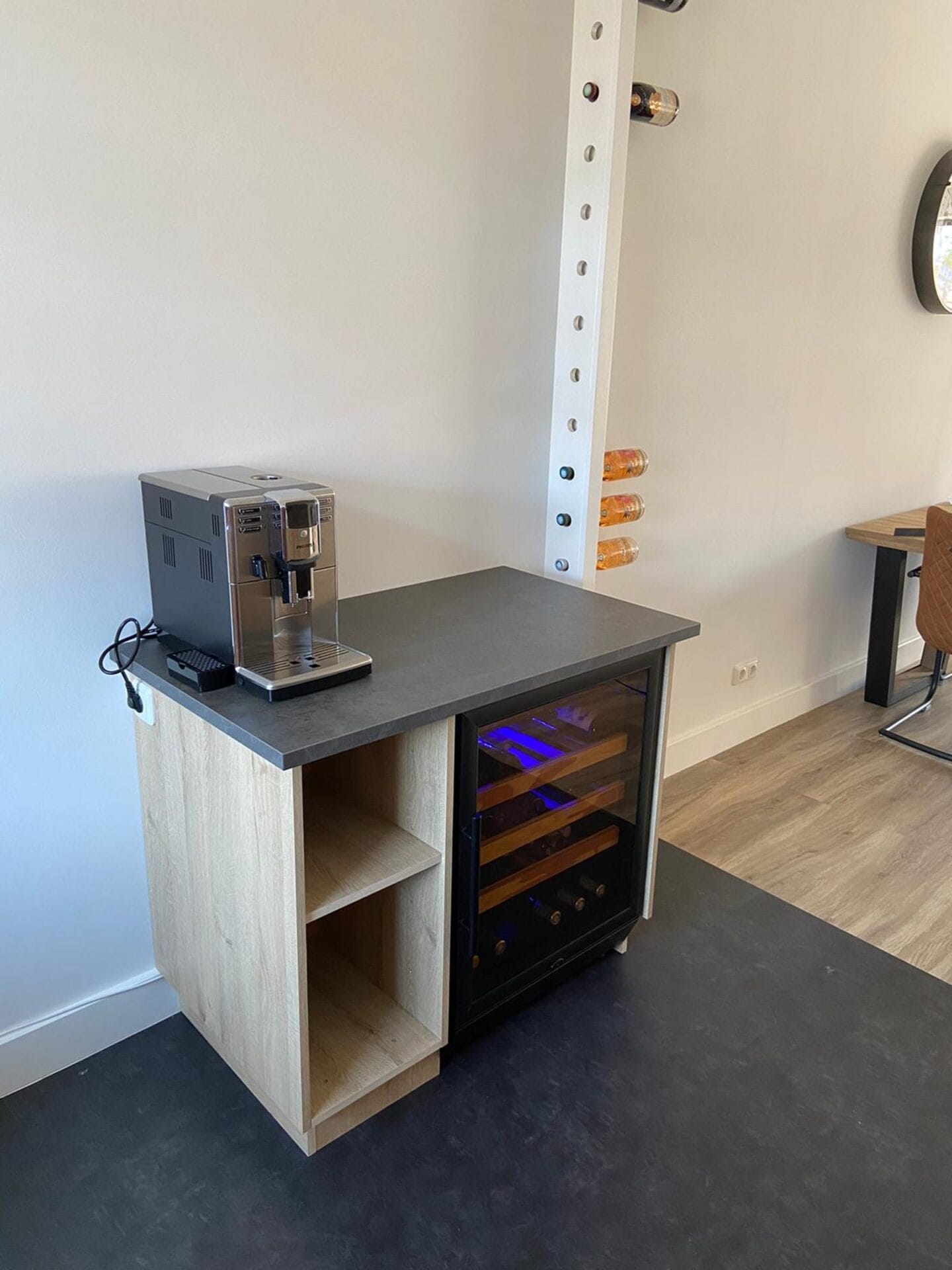 This model has 3 extendable shelves, so 4 “compartments” (including the bottom) for storing your bottles. If you want to change the position of the shelves, this is of course possible for all shelves.