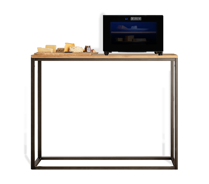 Séparément, par exemple, vous pouvez placer une planche sur les clayettes. Cette planche peut, par exemple, être faite de bois que vous appelez «Plateau à fromage» vous pourrez l'utiliser pour servir votre fromage directement sur la table. Vous pouvez également placer des couteaux et des assiettes à fromage dans la cave à fromage afin d'avoir tous les fromages et accessoires associés à la bonne température pour déguster les fromages de manière optimale !